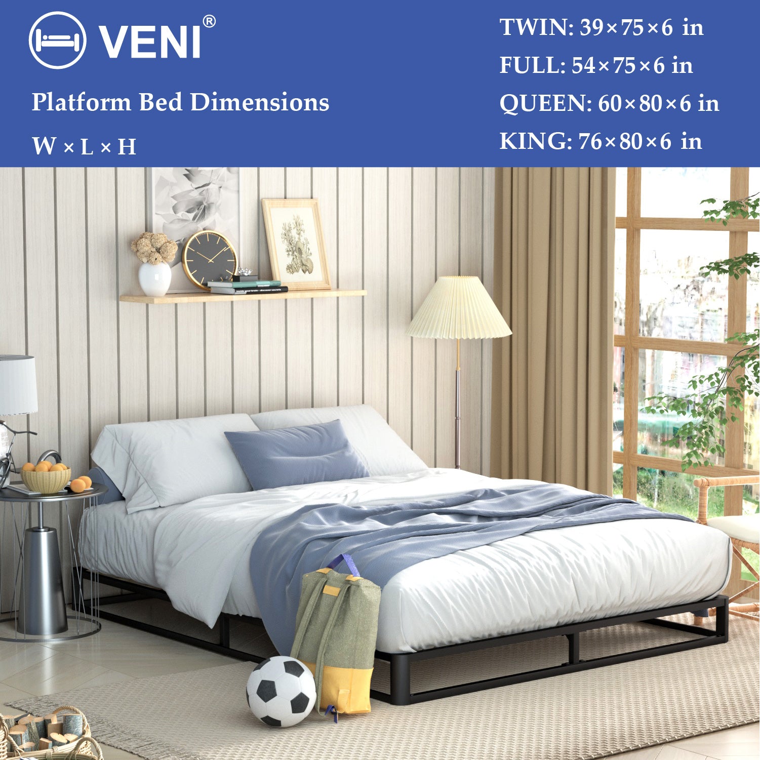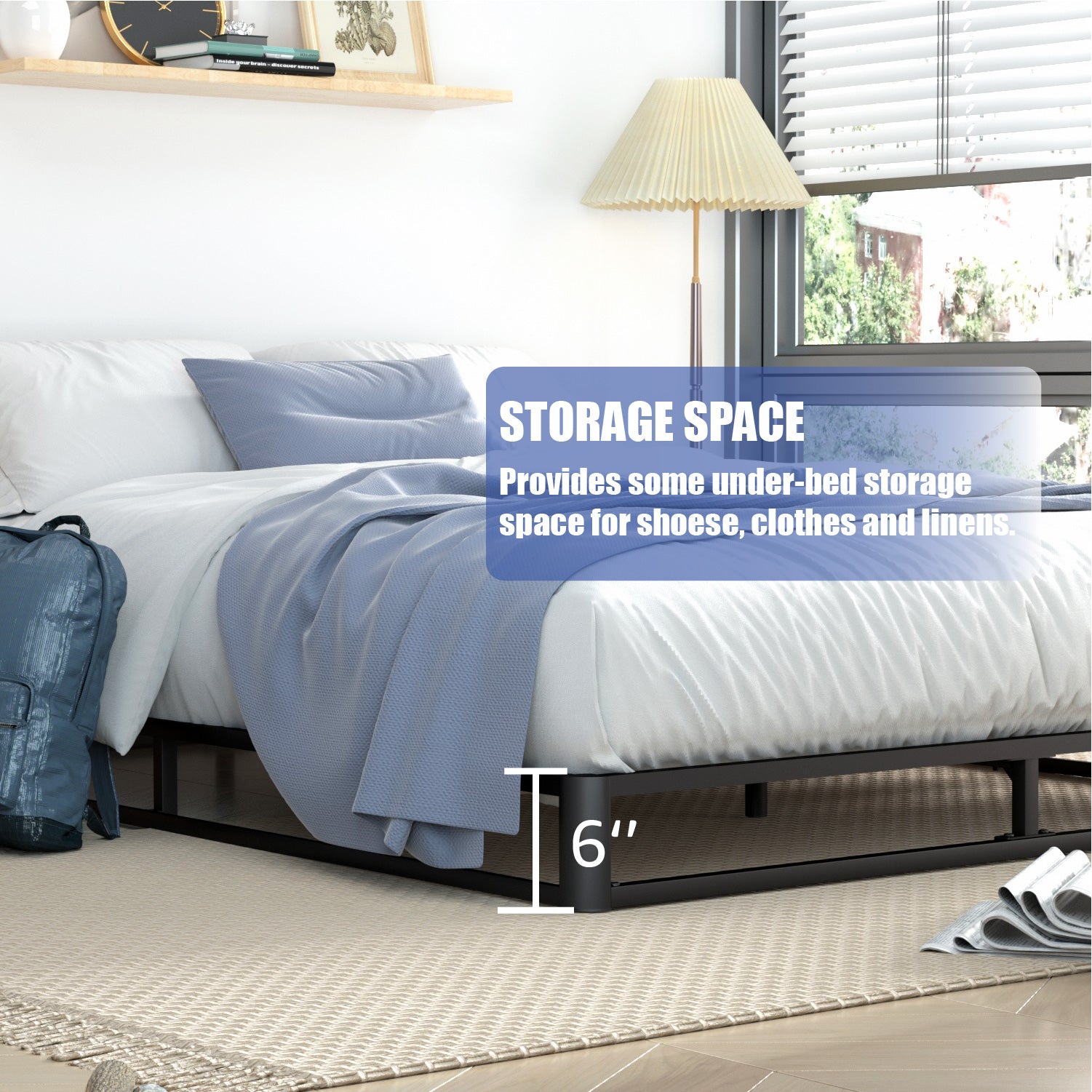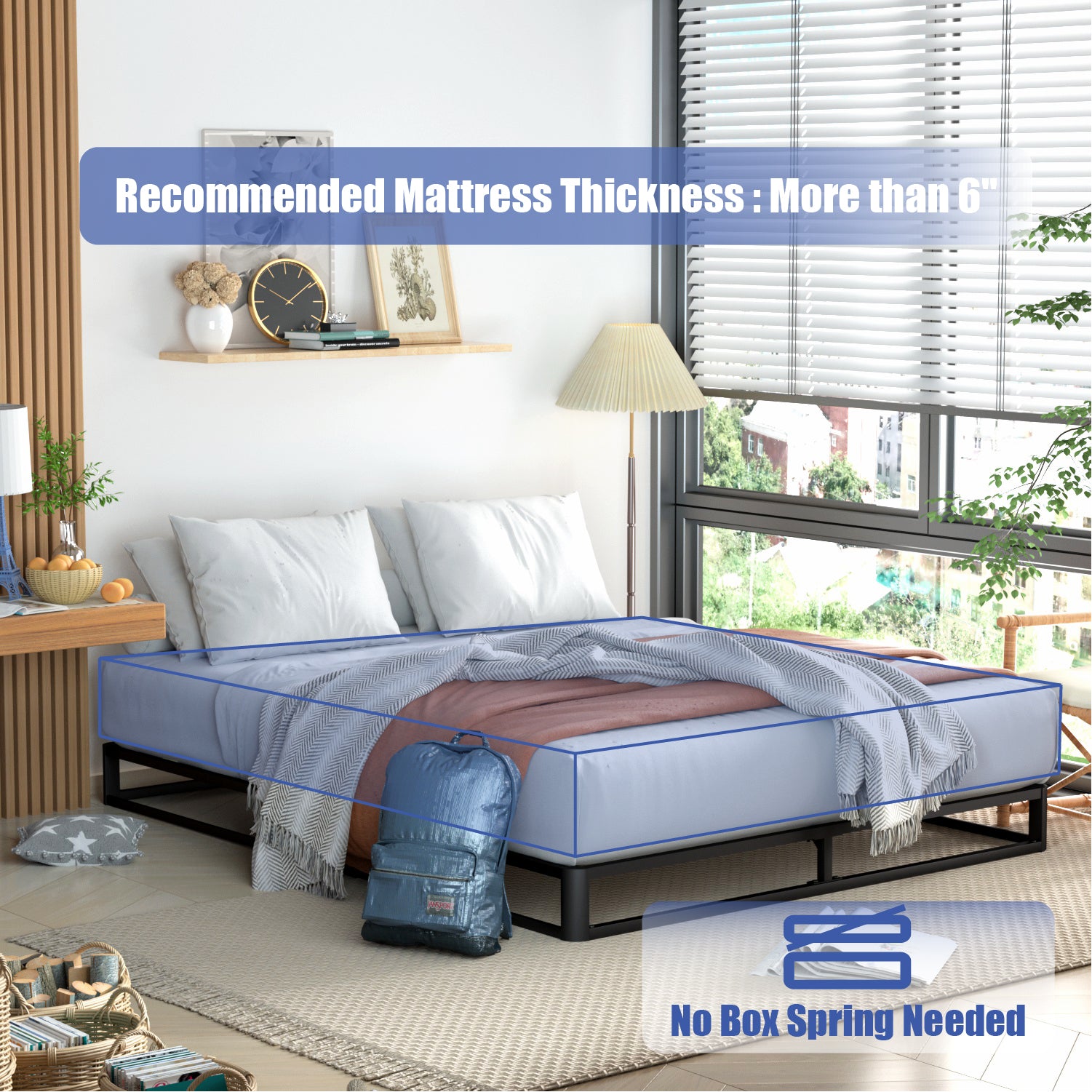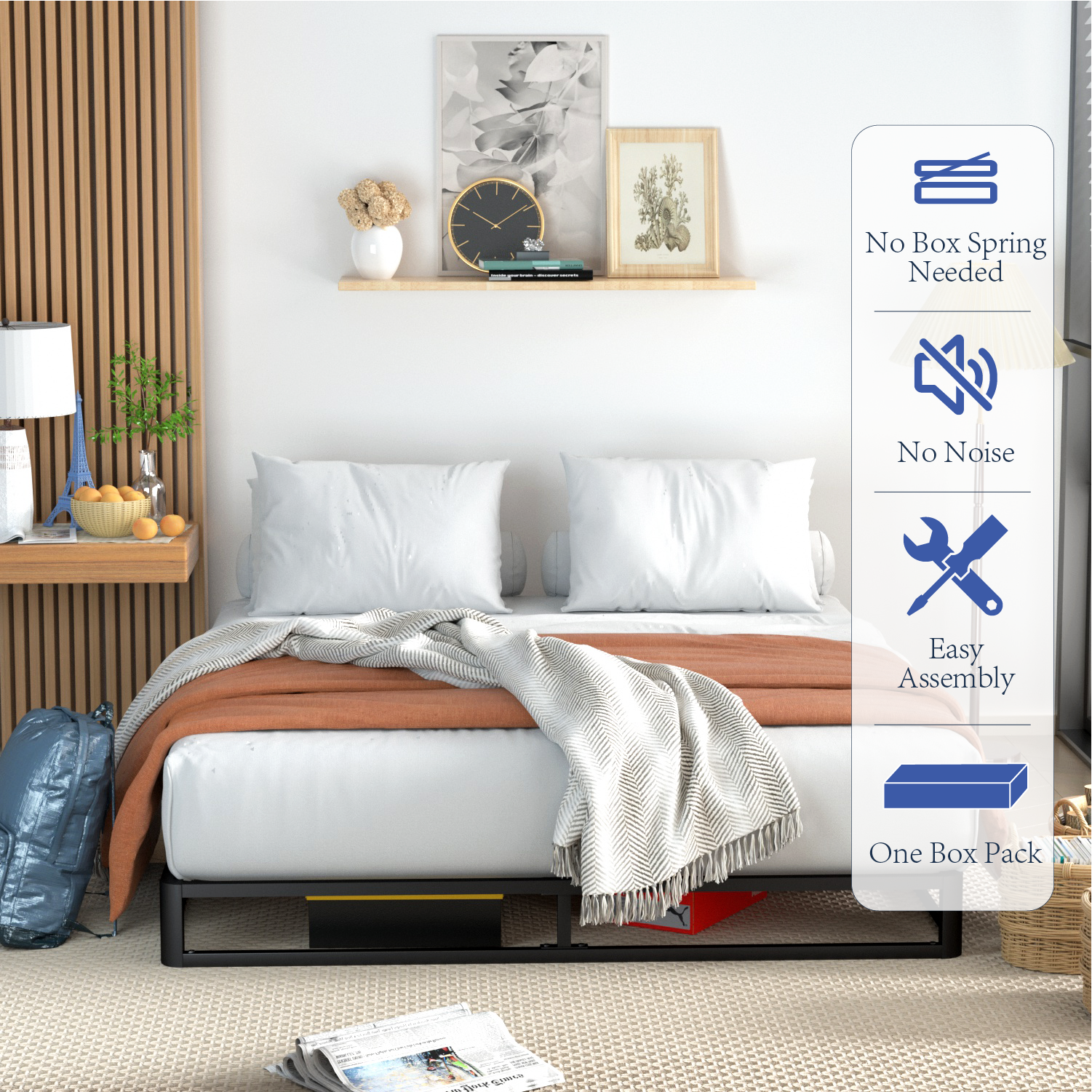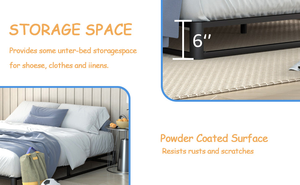 - Easy Assembly: The bed frame metal is a simple combination structure, and all the necessary hardware and tools are well packaged in the box, you can install this queen bed frame in 20-30 minutes