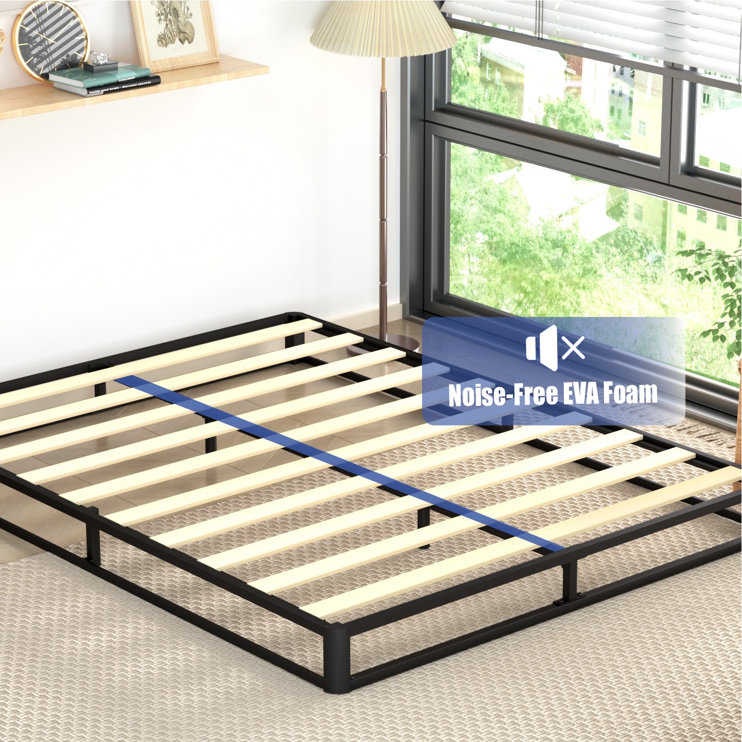 - Noise-Free Sleep: The queen size bed frame with wooden slats is strong and durable.Square frame structure will make the whole bed frame more stable and reduce the noise from unstable and friction with mattress
